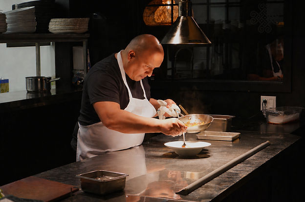 Né à Lima, au Pérou, Mario Navarrete Jr. quitte son pays à 18 ans avec un billet aller simple pour l’Amérique. Ce qui devait être un passage vers l’université devient finalement une découverte inattendue : la cuisine. Dans une petite brigade de l’Utah, il tombe amoureux du rythme des services, de la chaleur des cuisines et de l’intensité du métier. Quelques années plus tard, Montréal devient son terrain d’apprentissage. Il travaille dans plusieurs grandes maisons de la ville avant de partir se perfectionner à New York auprès du chef Daniel Boulud, puis auprès de figures reconnues comme Douglas Rodriguez et Guillermo Pernot.